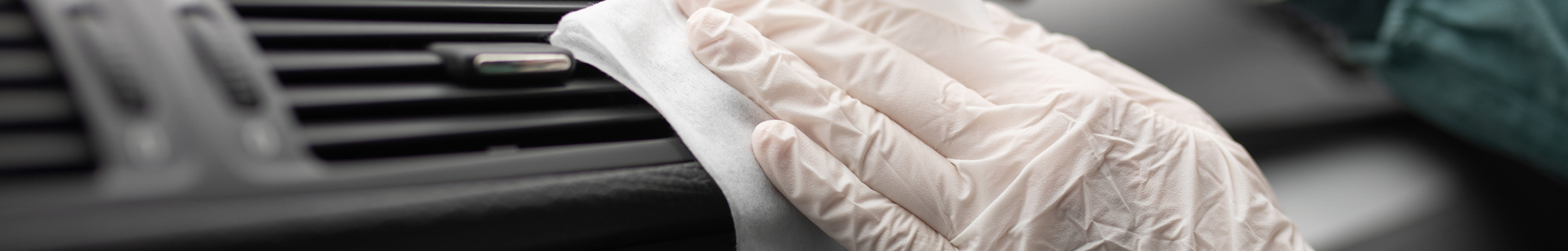 “You can use disinfectant wipes for areas like the steering wheel if you wish but you want to make sure you don’t damage the vehicle’s interior so steer clear of bleach or ammonia-based products.”
